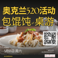 ❗客服报名 NZsingle520活动 || 5月18日周六下午到晚上,包馄饨+重庆小面+桌游+聊天,有早鸟价